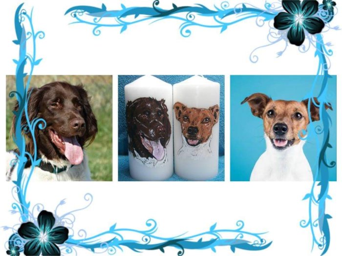 Dobrý den , namaluji dle vaší fotografie vašeho pejska na hrneček , svíčku , tričko , hodiny , vše na domluvě .. zašlu po celé ČR