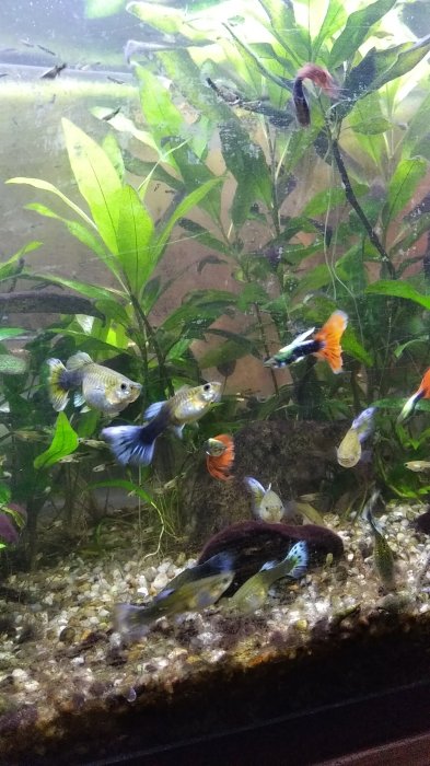 Daruji pavi ocka. Domaci chov. Důvodem je premnozeni. Mladata rybicek v dospelosti camci s oranzovym ocasem a cernym telem. Samice bud s modrymi ploutvemi nebo modre s puntiky.
