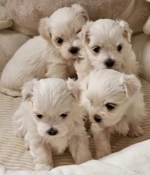 Máme k prodeji čtyři štěňátka maltézského psíka.Štěňátka se narodily 25.11. a do nových domovů budou připravené cca od 19.1. to budou mít 8 týdnů ale možno odebrat i později nikoli dříve.