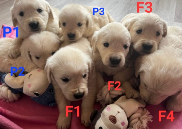 Chovatelská stanice Mini terapeut zadá štěňátka narozená 28.11.2025 Rodiče Matka- Anna-Luysa Porubský květ-38 cm Otec-Beauty od Magyc Golden Evanga 39...