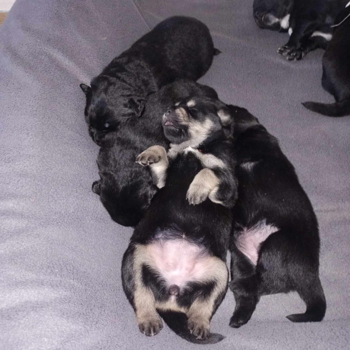 Pěkný den, Fenka narozena dne 7.10.2025. K odběru ihned. Černá s pálením bez PP Otec - modrý, fenka - černá. Zdravá, čipovaná, očkovaná a má pas. K fence...