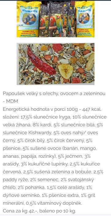 Směs pro velké papoušky 10 kg 390,-