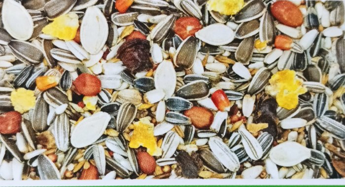 Dále v nabídce: slunečnice černá 20,- kg, slunečnice žíhaná 25, - kg, čirok červený/bílý 20,- kg, pohanka 20,- kg, mungo fazole 45,- kg, arašídy ve skořápce 70,- kg, niger, lněné semínko, pohanka loupaná, svatojánský chléb a další.