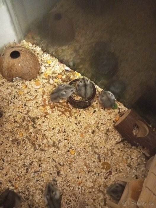 Nabízím mláďátka křečíka džungarského, přítulná, čiperná, zvyklá na děti, vychovaná v domácím prostředí, umí pít z napaječky. Stáří 5 týdnů. 80 Kč/kus. Osobní odběr na Praze 10.