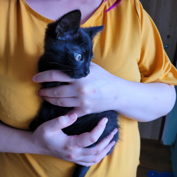 Ilias, narozený cca. na Mikuláše roku 2023, k nám doputoval s maminkou a sourozenci, které někdo nechal ve vlaku. Hned zpočátku prodělal kalicivirozu. Nyní ho čeká první očkování a netrpělivě vyhlíží nový domov.
