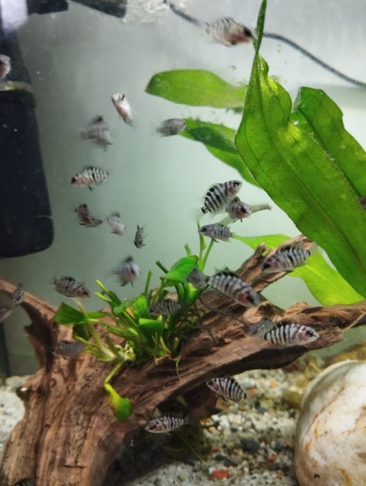 Nabízím zhruba 30 kusů kančíků příčnopruhých ve velikosti asi 1-2 cm pro dochování. Jsou již vybarvení a zdraví, přijímají granule sak 1.