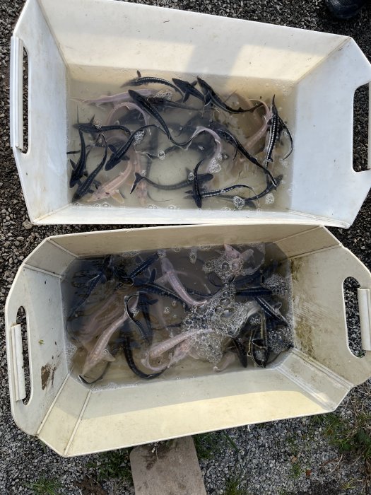 Dobrý den. Prodam přebytek jeseteru ruských 20-30cm - 220kč/ks, hvezdnatych 20-30cm - 240kč/ks a albinu 25 -30 Cm - 250kč/ks.