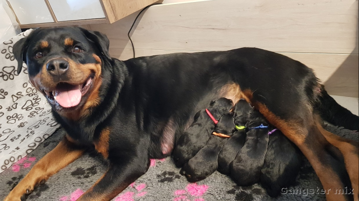 Štěnátka rotvajlera s PP FCI ze zahraničního krytí, po zušené rezervaci volná fenka a pejsek, odběr 6.4.2024. Předpoklad výborného zdraví, pěkného exteriéru, silné kostry a kontaktních přátelských povah vhodných jak pro rodinu, tak pro výstavy a sport. Štěňátka jsou vymazlená, očkovaná, čipovaná, nekupírovaná. Pouze do dobrých podmínek zodpovědným zájemcům!
