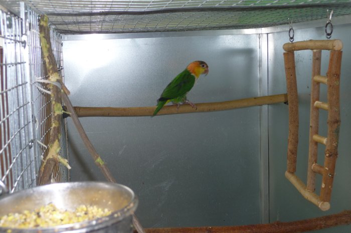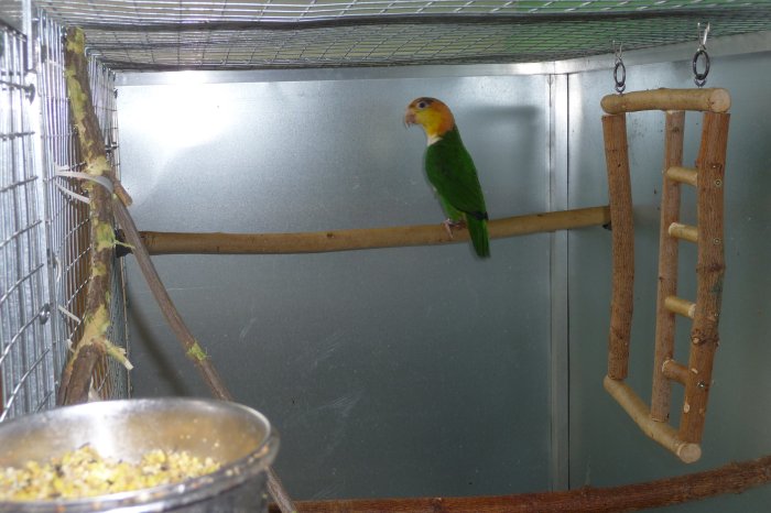Prodám 0.1 amazonek bělobřichý zelené punčošky, 05/2023 přirozený odchov až na bidlo.Silný kus.DNA.