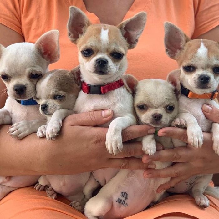 Nabízím k odběru 5 štěňat krátkosrsté čivavy s PP čtyři kluci jedna holka. Štěňátka jsou zdravé, budou samozřejmě odčervené a k odběru za 2 týdny. Krmené kvalitním krmivem pro správnou výživu. Váha maminky 2kg. Cena 2500 Kč, cena holky 2500 Kč.