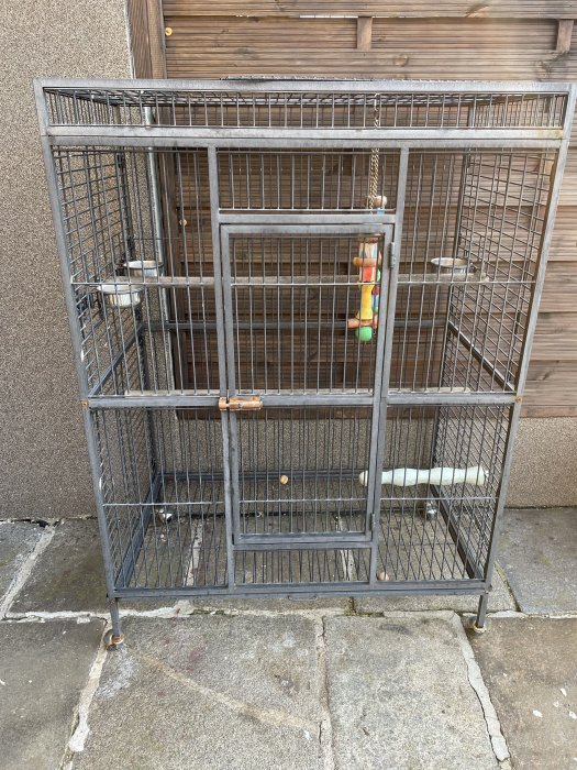 Prodám klec šířka 120cm, hloubka 54cm, výška 100cm. Klec je nerozebíratelná, přední stěnu lze z korpusu vyjmout. 2 plastové vaničky 18cm hluboké. Přední stěna...