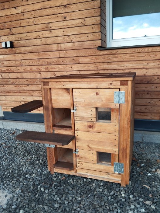 Vyrobeno s překližky. Lepeno nezávadným lepidlem pro zvířata. Rozměry-šířka a výška 30 cm, hloubka 13 cm. Možnost vyrobit i jiné rozměry. Cena bez plastového wc.