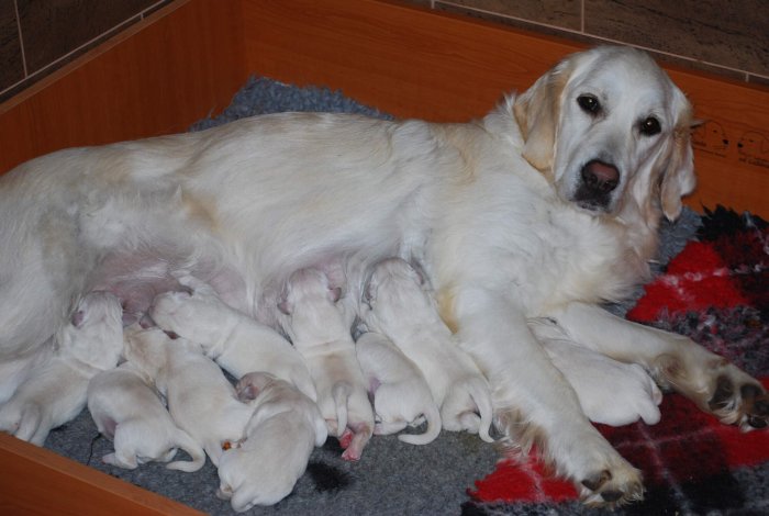 Prodám stenata zlatého retrívra krásné sněhové barvy narozena 28.4 s možností odběru od 10.7.