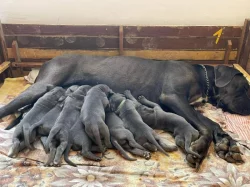 Mezinárodní chovatelská stanice Slunečné Poddyjí nabízí štěňátka Německé dogy modré barvy s PP. K odběru sedmý měsíc. Narozeny 17.5.2024 Tři holky a pět kluků, budou odčervená, očkovaná