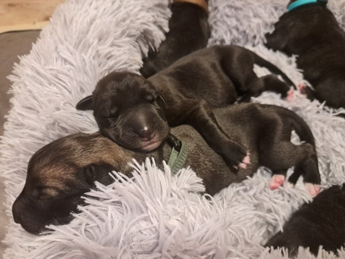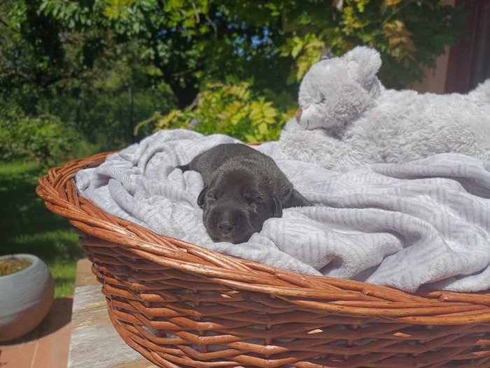 V době odběru, koncem srpna, budou štěňátka očkovaná, čipovaná, několikrát odčervená a maximálně socializovaná. Do nových domovů půjdou s PP, kupní smlouvou, EU pasem, manuálem na štěně a startovacím balíčkem pro první dny. Nezávazná návštěva u nás vítána, trvalý kontakt s budoucími majiteli a chovatelský servis samozřejmostí.
