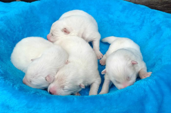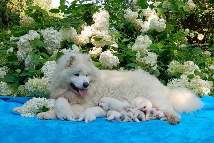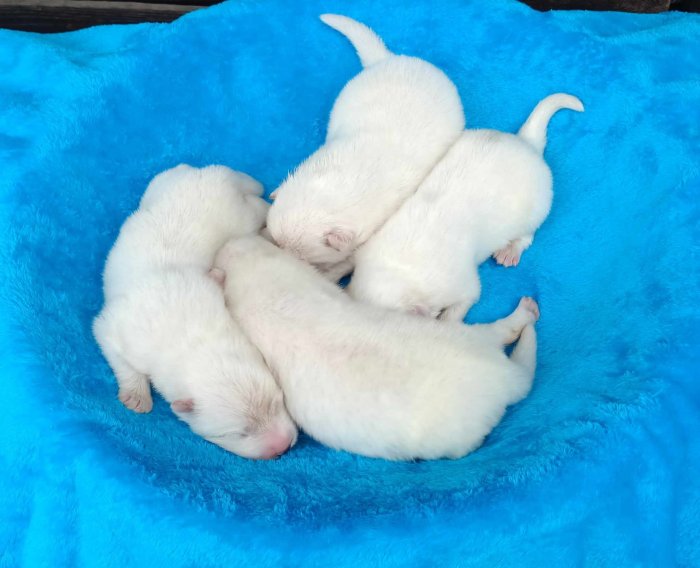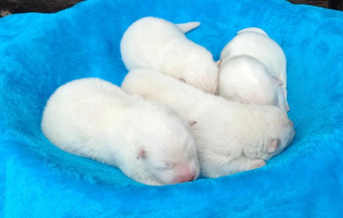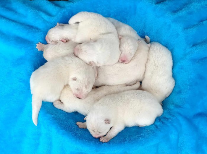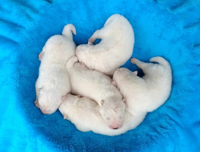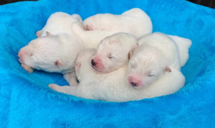 V chovatelské stanici SILESIAN RUBY se dne 23.6.2024 narodila krásná, statná štěňata samojeda s PP (FCI) vrh B po kvalitních, nadstandardně zdravotně vyšetřených rodičích. Narodily se 4 feny a 5 psu. Oba rodiče mohutného typu, statné kostry, bohatě osrstěni. Oba rodiče mohutného typu, medvědí hlavy. Sytý pigment.