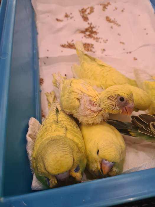 měsíční mláďata andulky.