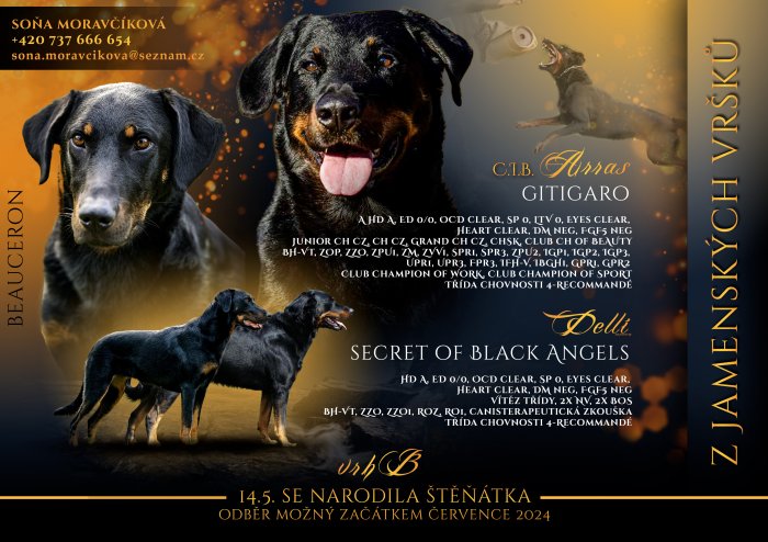 Štěňata beauceronů s PP po výstavně úspěšných rodičích, s vyrovnanou povahou a dobrým charakterem, se zkouškami a nadstandardním zdravotním vyšetřením - .