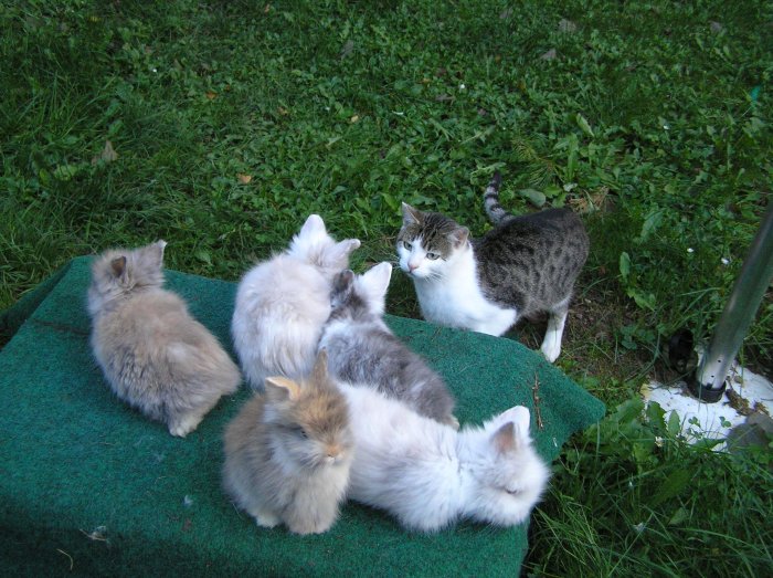 stáří rok a půl, nekastrovaná, po mláďatech, uvolňují ji z chovu z důvodu redukce, je hodná, nekouše, nechá se hladit, chodí na králičí WC, barva modrá perlová,...