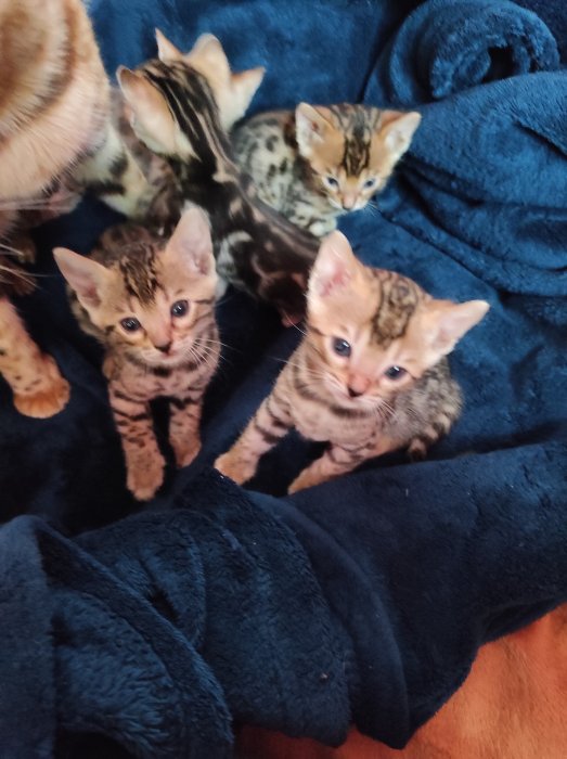 Prodám čistokrevná bengálská koťata bez PP.Narozena 9.8.2024.Pravidelně odčervená,očkovaná a plně socializovaná.Zvyklá na pejska.Již k odběru.