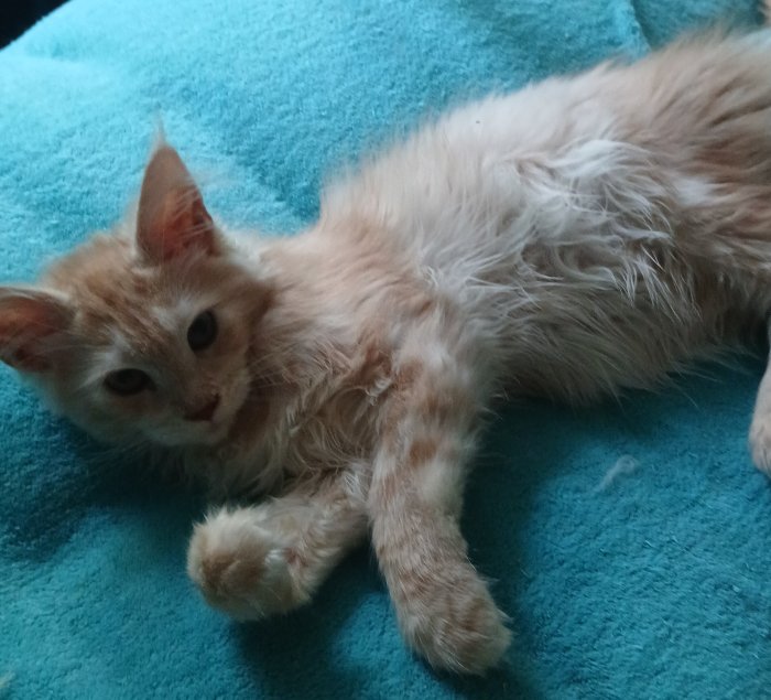 Nabízíme velice kontaktní koťátko mazlené dítětem. Samo papá granulky i kapsičky pro koťátka sebou je dostane také.