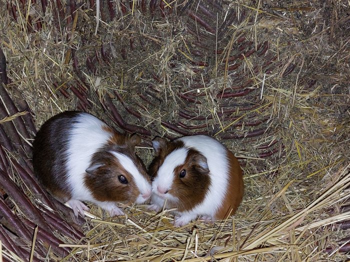 Nabízím 2 samičky morčat, jsou 1,5 roku staré. K morčatům dám klec, napáječku, WC