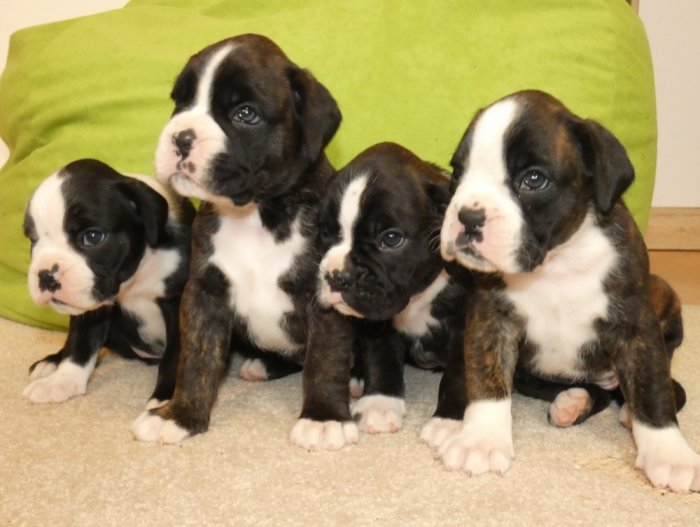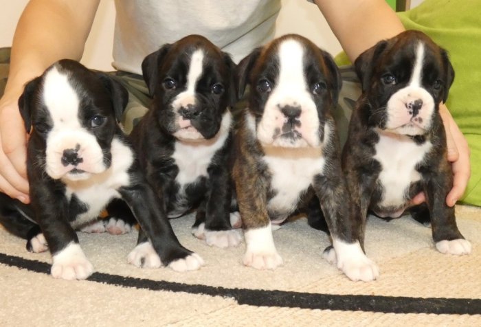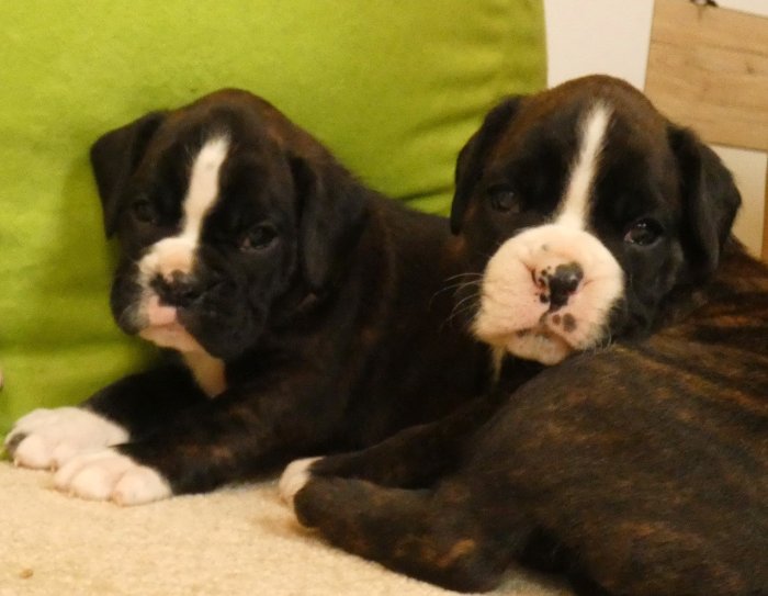 Chovatelská stanice Bretorri nabízí štěňátka boxerů - fenky v žíhané barvě srsti s bílými znaky na hlavě, hrudníku i tlapičkách, s průkazem původu po sportovně vedených, zdravých, nekonfliktních rodičích s typickou boxeří milou a temperamentní povahou. Budou odčervené, očkované, čipované, s pet pasem, zvyklé na maso i granule, na pobyt v bytě i venku. K odběru ve 2.polovině prosince, nebo dle domluvy. Kupní smlouva a chovatelský servis samozřejmostí. Nezávazné návštěvy po domluvě možné - mělnicko.