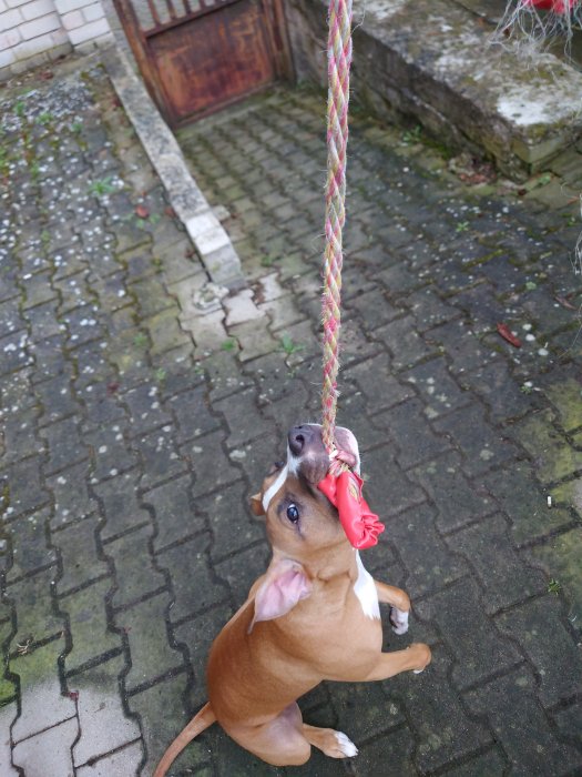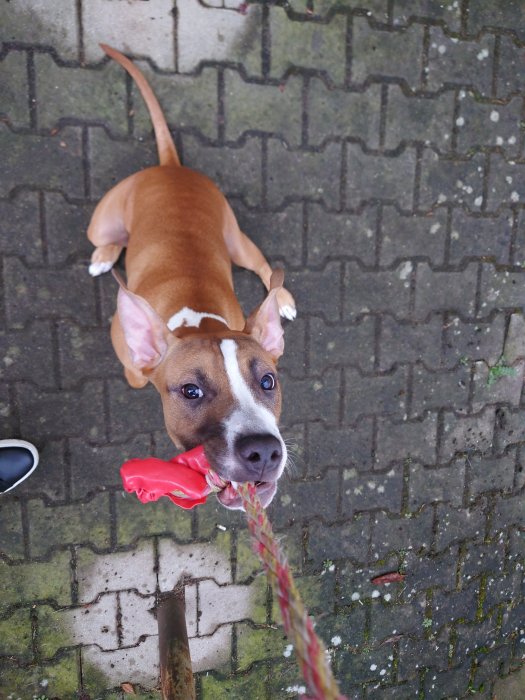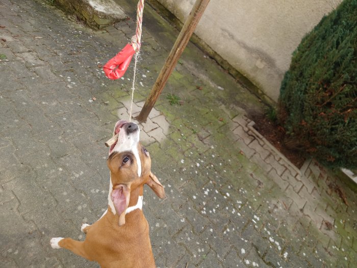 Dobrý den máme roční fenku jméno Paris křížená pitbulka velikost M zlato hnědá barva je hravá moc hodná mazlivá je ještě mladá takže je trošku akční je moc přátelská neštěká má ráda stísněné prostor bohužel nemáme nani čas láme nám to srdce že musíme dát pryč nechceme za ní nic jen aby bály u dobré rodiny co mají rádi zvířátka má očkovací průkaz má ráda přetahování lana míčky a hodně mazlení je chytrá na je jí věk vám ukáže že něco po vás chce a ukáže vám to