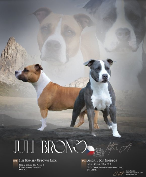 Oba rodiče jsou zdrav. testováni. Mají výbornou povahu a vynikající výstavní úspěchy.
