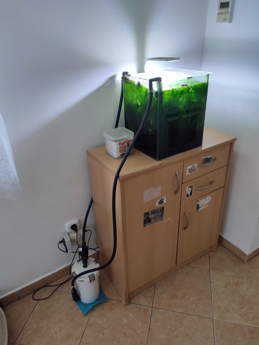 prodám akvarium 30L s vybavením ,rostliny, lávové kameny , krevety