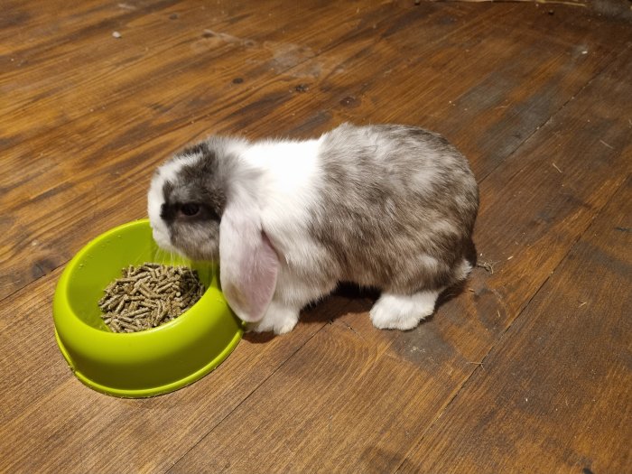 stáří rok a půl, nekastrovaná, po mláďatech, uvolňují ji z chovu z důvodu redukce, je hodná, nekouše, nechá se hladit, chodí na králičí WC, barva modrá perlová,...