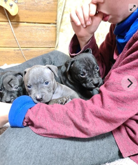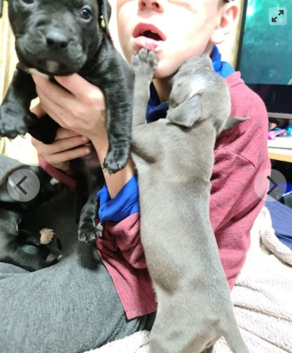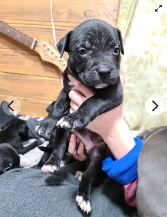 Americký stafordšírský teriér bez pp po papírových rodičích. Krásná zdravá štěňátka. 3 fenky a 3 pejsky. Oba rodiče klidní, cvičeni, vyrovnané povahy a máme oba rodice samozřejmě doma. Bereme zálohy na štěňátka a po domluvě klidně dovezeme.