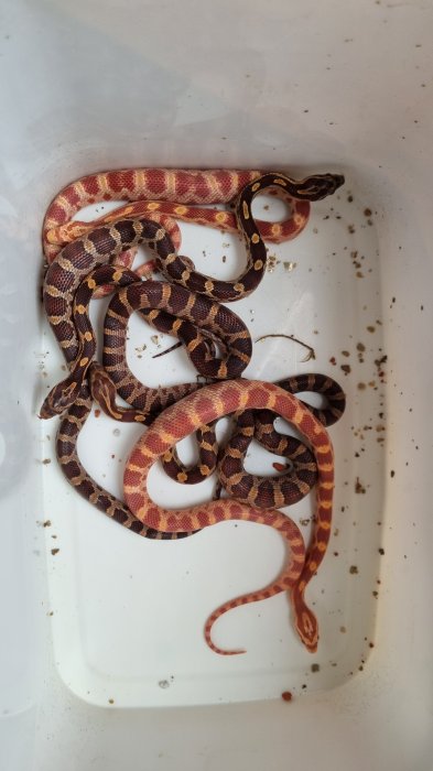 Prodám mláďata 3ks Korálovky sedlaté mex cambeli. Narozena září, samostatně přijímají potravu(rozmr. holata). Vel. cca 30cm, v dospělosti cca 100cm. Zajímavě...