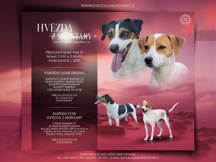 2.12 se narodilo 5 pejsků výborným rodičům. Matka několikrát CAC i CACIB, Národní vítěz,otec šampion ČR a SR. Oba rodiče mají výborné zdravotní výsledky, i...
