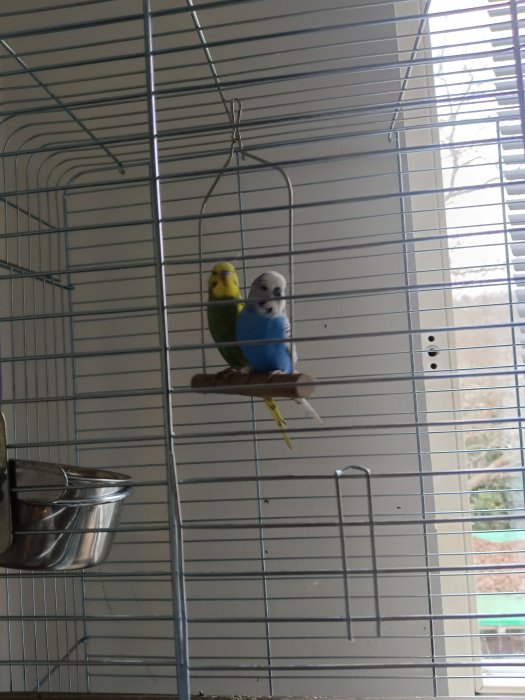Prodám andulky, jsou staré 3 měsíce. Spolu s klecí, krmivem, podestýlkou, krmítky.