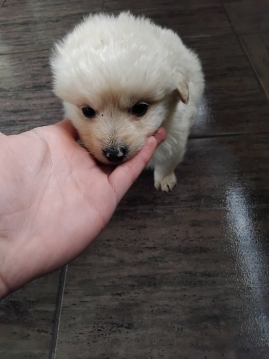 Prodám štěně trpasličí špic bílí ma 7tydnu je řádně odčervený papá masenko granulky roalky je zvyklí i na děti cena 7000kc je ihned odběru pouze volat děkuji