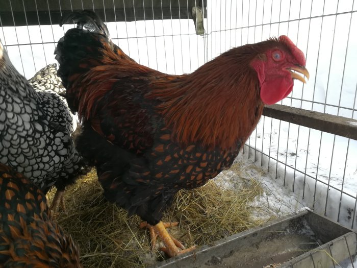 Prodám čistokrevného kohouta wyandotky velké, zlaté, černě lemované. Toto plemeno je vhodné i do chladnějších oblastí, růžicový hřeben neomrzá.