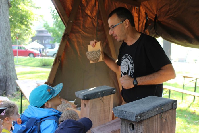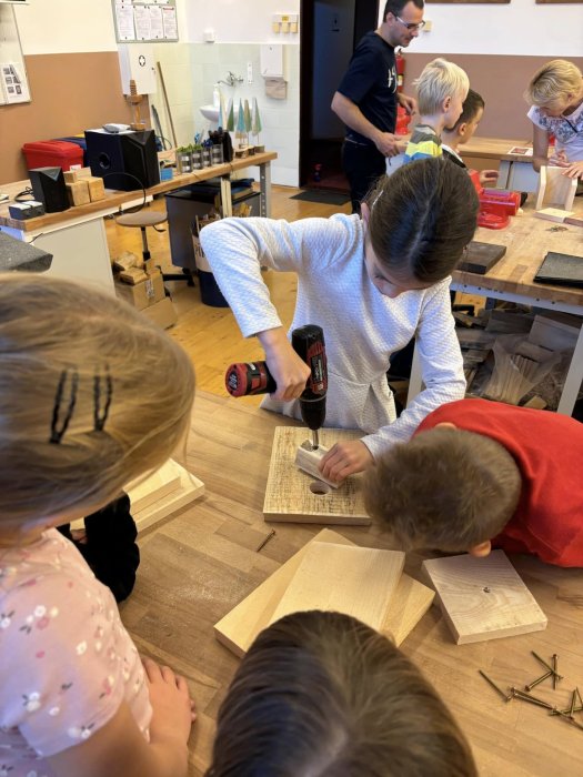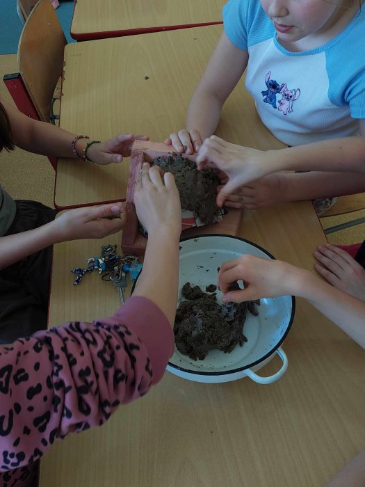 Menší děti od školkových dělají patlané hnízda z "bláta", starší mohou uvrtat i klasickou dřevěnou...