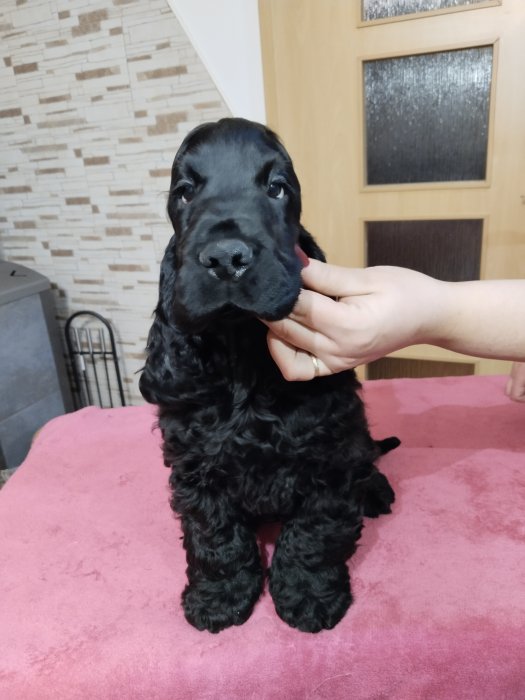 Nabízím velmi kontaktní štěňátko. Anglického kokršpaněla v černé barvě s PP. Pejsek je plně očkováný, je čipovaný, kupní smlouva je samozřejmostí. Pejsek vyrůstá v rodinném prostředí.Zvyklí na děti.Nezávazná návštěva možná. Rodiče se zdravotními testy.