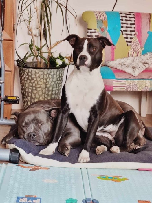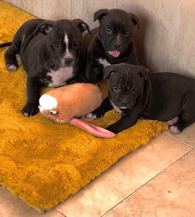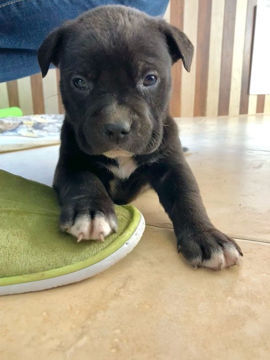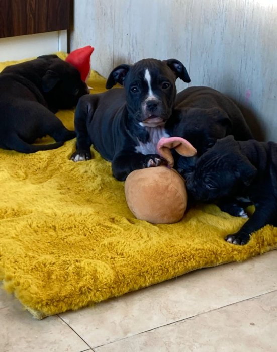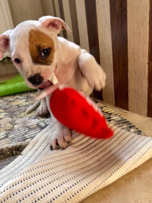 Matka Amstaff modrý gen, výborná hlídačka budící respekt. Nekonfliktní vůči jiným psům i lidem. Bez PP ale rodiče má s PP. Nenahlásilo se krytí, rodiče v rodině.