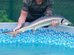 Jeseter ruský až do velikosti 12kg cena 290kč/kg, běžné velikosti 4-6kg cena 280kč za kg