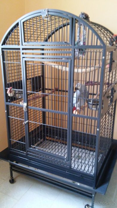 Prodám klec pro papoušky Montana. Rozměry s lapači nečistot - šířka 110 cm (bez lapačů 91 cm), hloubka 91 cm (bez lapačů 71 cm), výška 163 cm.