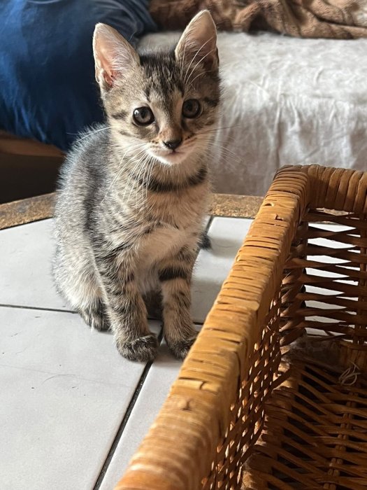 Nabízíme velice kontaktní koťátko mazlené dítětem. Samo papá granulky i kapsičky pro koťátka sebou je dostane také.