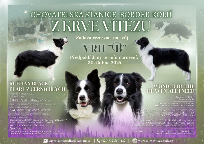 S radostí oznamujeme narození nádherných štěňátek plemene Border kolie! Je to vrh "B" chovatelské stanice Z Krve vítězů . Máme 5 pejsků a 2 fenky ( již rezervované) , narozené 25. 4. 2025.