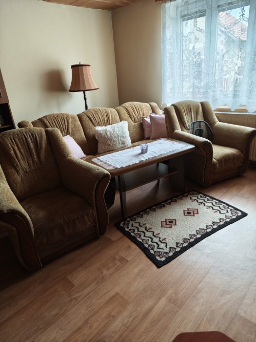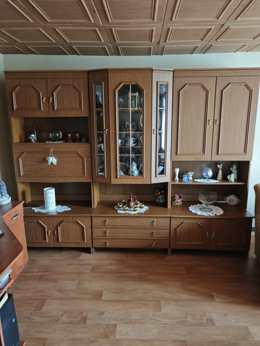 Obývací stěnu, sedací soupravu, křesla, konferenční stolek.