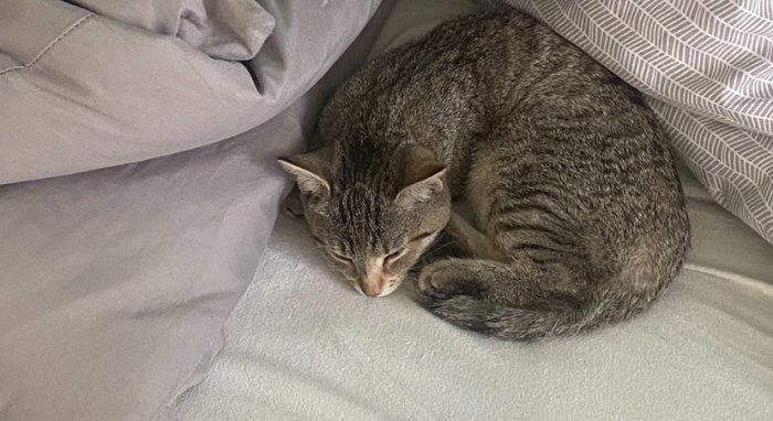 Bidon, kocourek, narozen cca v dubnu 2025 (ev. číslo 2025/08/06), očkovaný, č. mikročipu 981020000781009, KASTROVANÝ. 4 kočičí sourozence jsme přijali z Okrouhlé...