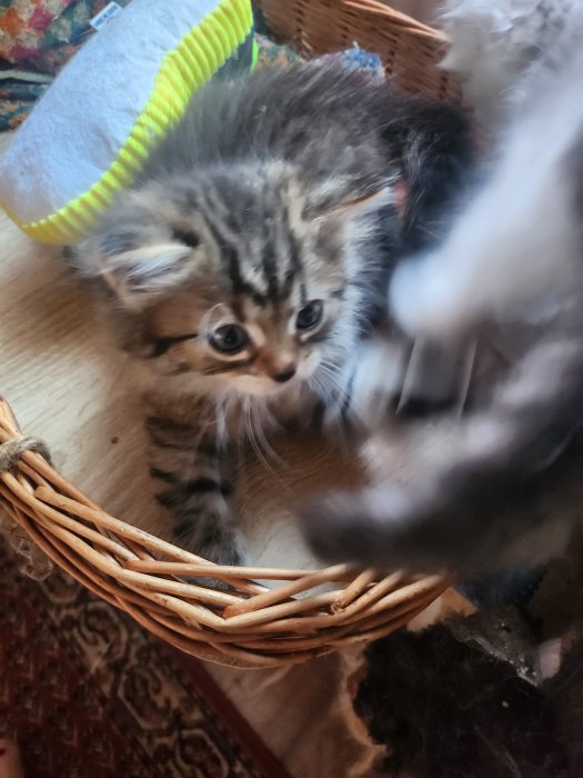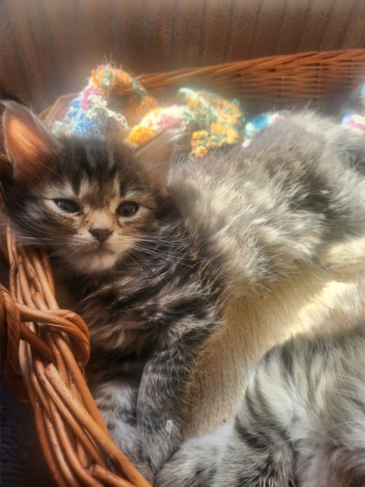 Prodám vymazlena mainska myvali kotatka s britskou kočickou naučená na wc,odčervená,očkovaná.Narozena 20.2.2025
