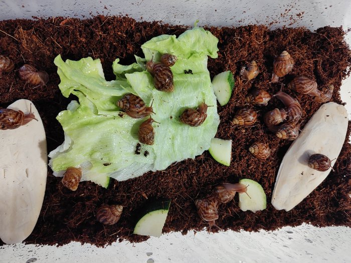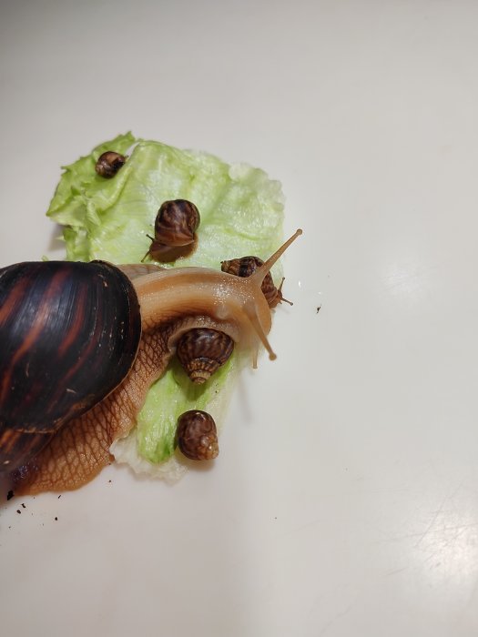 Daruji do dobrých rukou mláďata šnečků Achatina Immaculata. Narozené na začátku dubna. Tento druh šneka dorůstá až 12-15 cm. Je to nenáročný domácí mazlíček vhodný pro alergiky. Aktuální velikost ulity 1 - 1,5cm