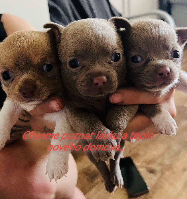 Od 15. června nabízím do dobrých rukou 3 krásné štěňata čivavy. Dvě holčičky a jeden chlapeček. Budou odčervená a očkovaná. Rodiče jsou : Fenecka dlouhosrstá, pejsek krátkosrstý s doklady,ktere mohu doložit.