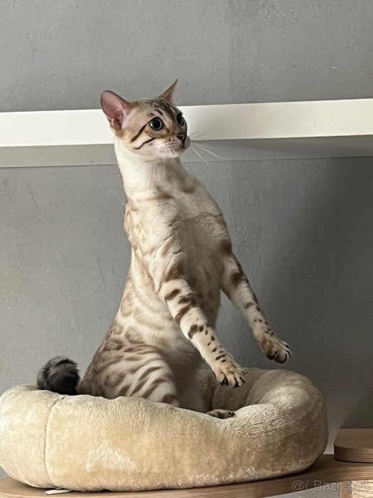Hledáme akutně novou rodinu pro bengálského kocourka v barvě snow lynx bez pp, po rodičích s pp. Váží 4,5kg, narozen 22.8.2024, je mu devět měsíců. Kocourek se narodil se zlomeným ocasem, který mu ale nijak nevadí. Je kastrovaný, velmi kontaktní, jemný a hodný, také upovídaný. Potřebuje citlivý přístup. Je to závisláček, nejspokojenější bude v rodině, ideálně k někomu se zkušenostmi s podobným plemenem. Pouze do domova s další kočičkou/kastrovaným kocourkem. Kocourek jako jedináček strádá, stresuje jej samota a my si nemůžeme dovolit další kočičku. Bengálské kočky potřebují společnost.